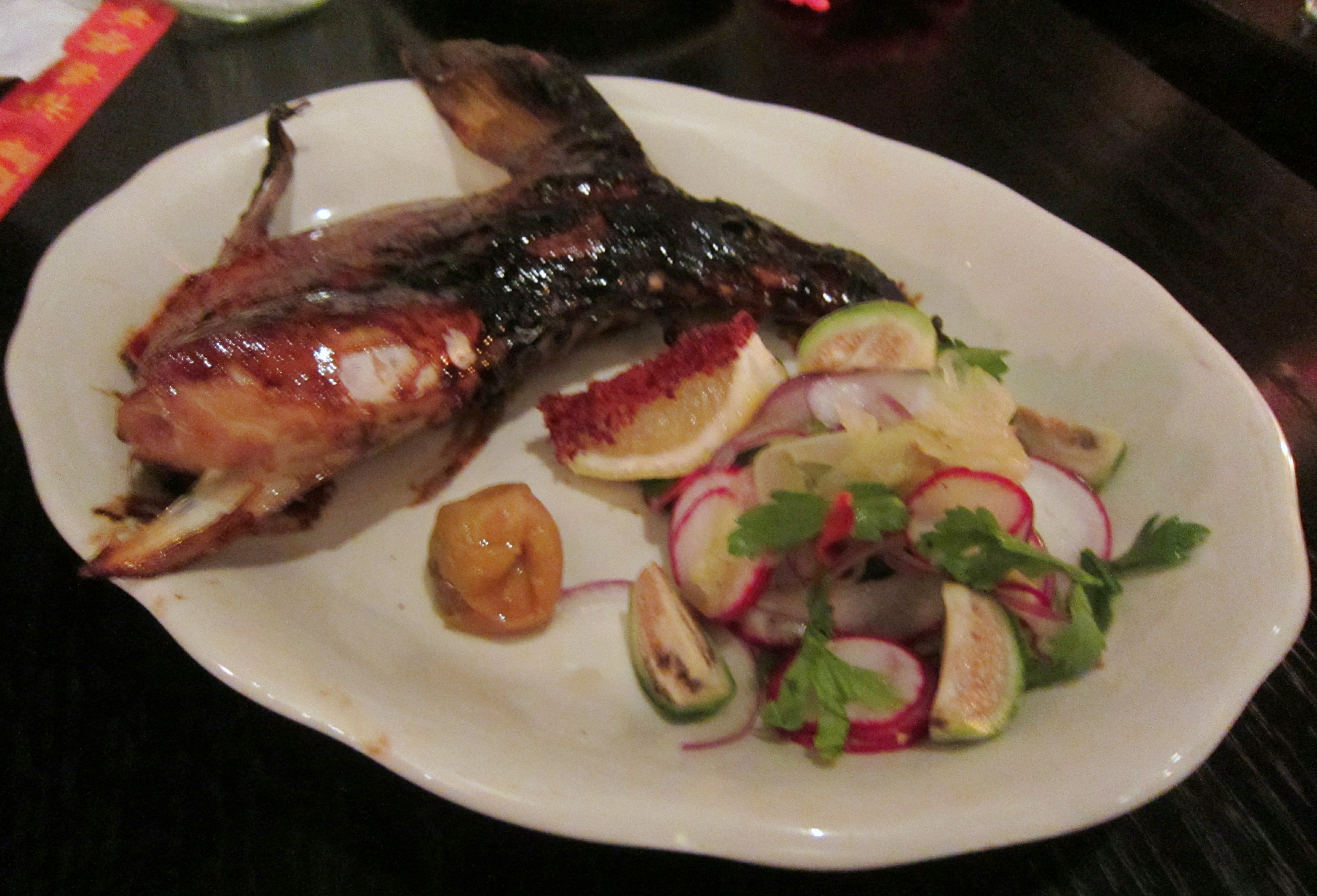 After our mandatory two hour wait, we were seated in the dining room where the service markedly improved. We ordered the Atlantic cod collar on special which was partially cured, basted in a tamarind-vinegar sauce, grilled and served along with a highly acidic salad of Thai eggplant, radish, cabbage and cilantro. The salad was extremely fresh and balanced the heavily salted cod. The cook on the cod was appropriate enough at about medium, but the flavor was more reminiscent of Carolina barbecue. Although it was well-prepared and balanced, the whole endeavor seemed ill-conceived and poorly executed.