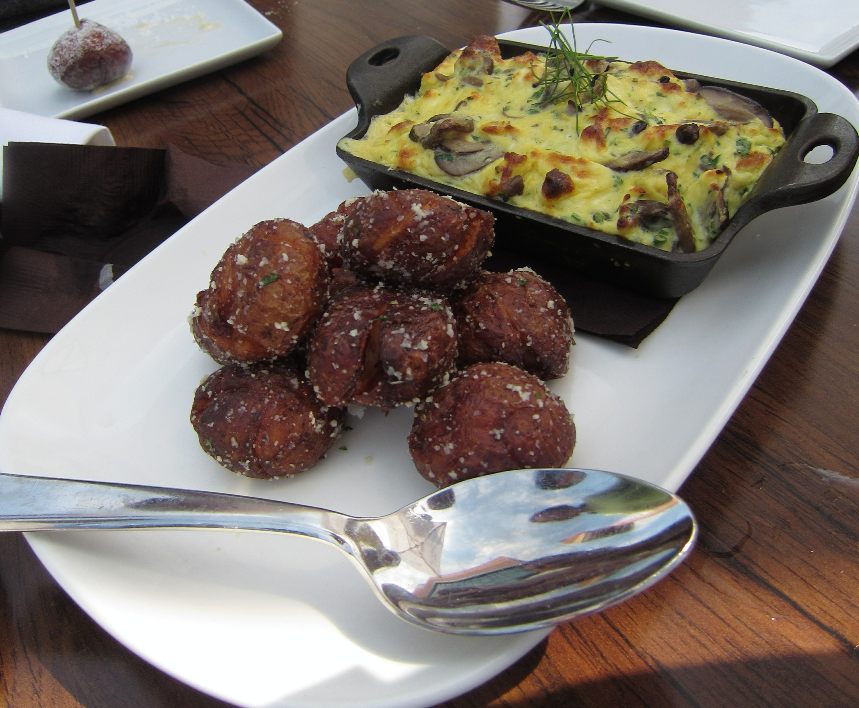 Another good plate is an omelette baked in a cast iron dish with ricotta cheese and baby shiitake, cremini and oyster mushrooms. The omelette was very light–the obvious result of baking–and delicious with incredibly fresh mushrooms.