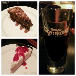 Chocolate-hazelnut tart, raspberry cheese cake, amaro